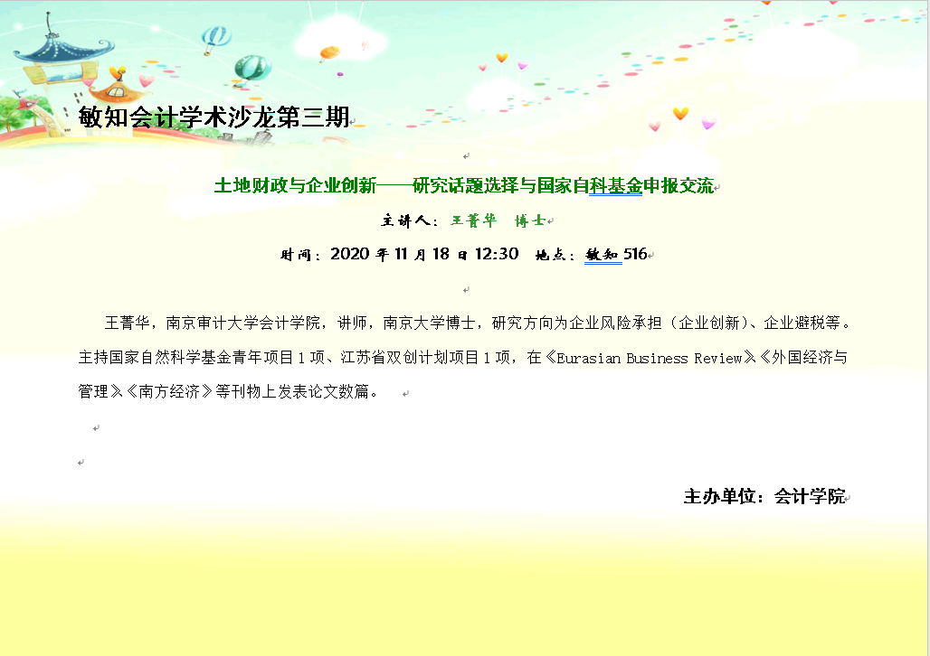 王菁华:土地财政与企业创新——研究话题选择与国家自科基金申报交流