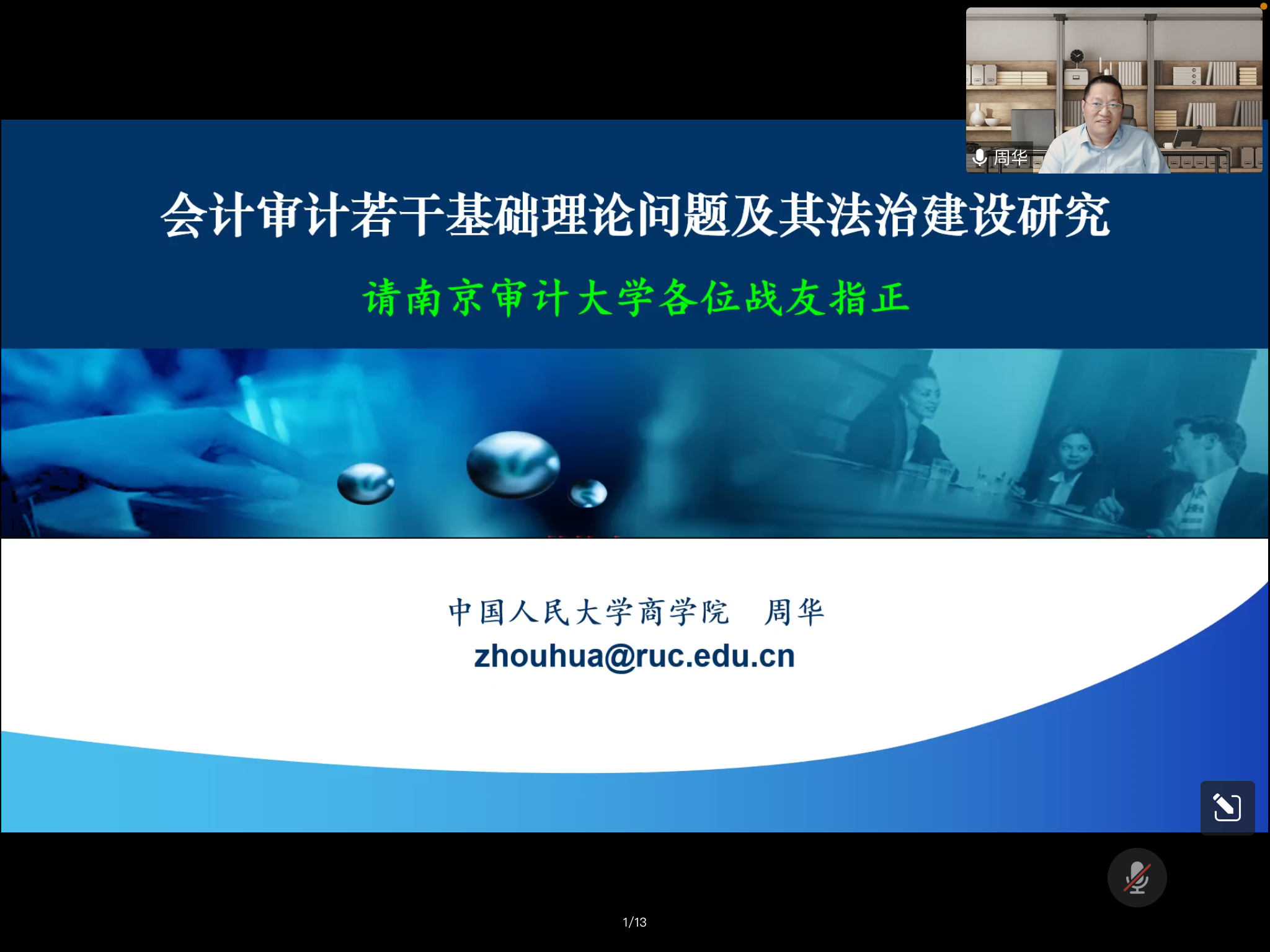 2022年6月23日下午,会计学院、泽园书院联合主办润泽会计学术名家论坛(第31期)。中国人民大学周华教授应邀作题为“会计审计若干基础理论问题及其法治建设研究”的学术讲座,讲座由会计学院院长温素彬教授主持。