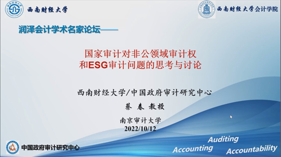 润泽会计学术名家论坛(第38期):蔡春教授谈“国家审计对非公领域审计权和ESG审计问题的思考和讨论”