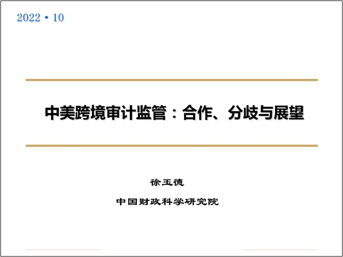 2022年10月21日下午,会计学院、会计与治理研究院和澄园书院共同主办的润泽会计学术名家论坛(第42期)如期举行。中国财政科学研究院副院长,博士研究生导师徐玉德研究员应邀为我校师生做了以“中美跨境审计监管:合作、分歧与展望”为主题的学术讲座。本次讲座由会计学院副院长潘俊教授主持。