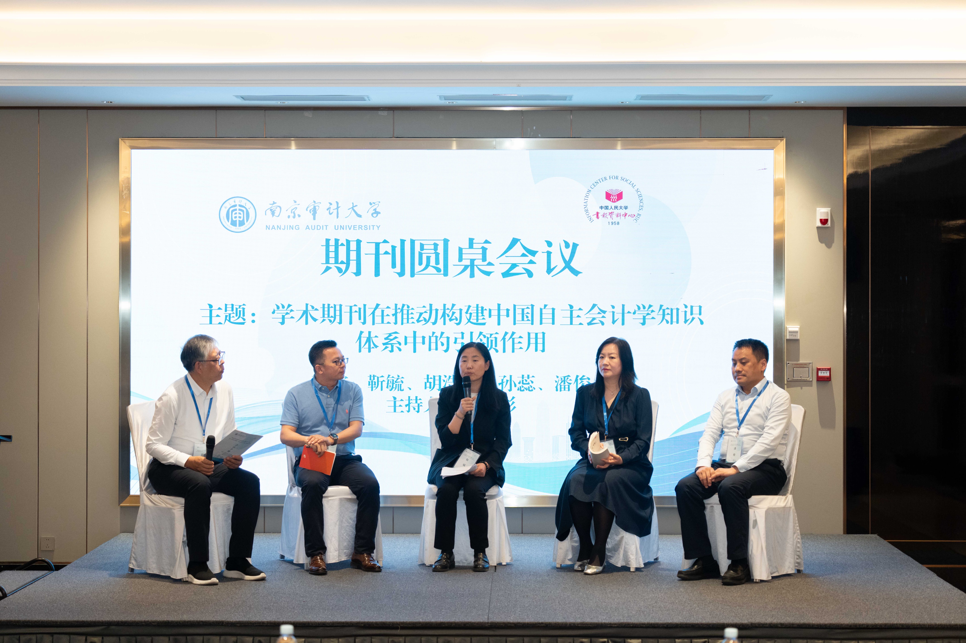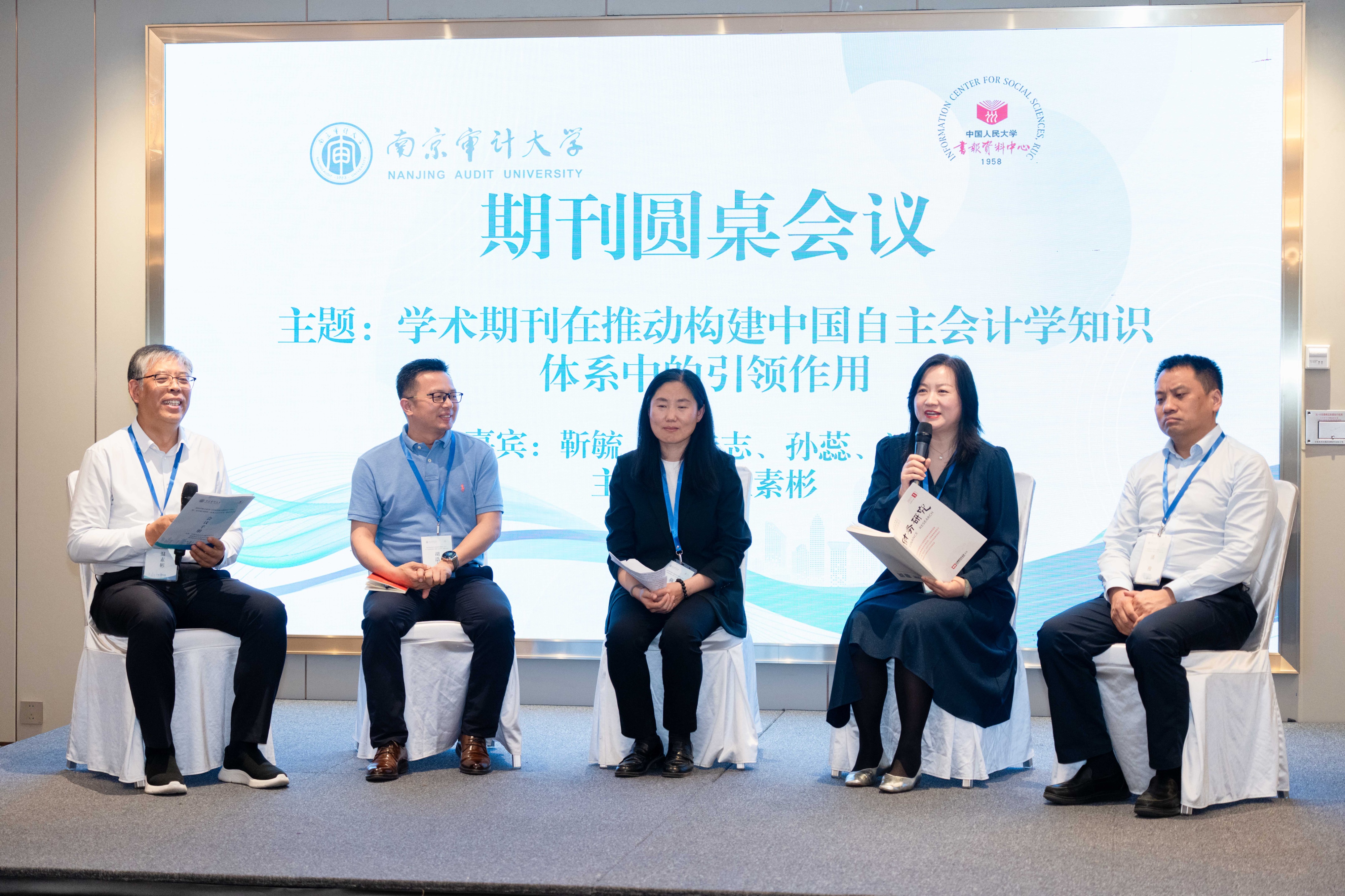 会议第四部分为期刊圆桌会议,主题为“学术期刊在推动构建中国自主会计学知识体系中的引领作用”。《中南财经政法大学学报》编辑部主任胡浩志编审,《财务与会计导论》编辑部主任靳毓编审,《财务研究》编辑部主任孙蕊编审,南京审计大学期刊社副社长潘俊教授依次发言。南京审计大学会计学院院长温素彬教授主持。