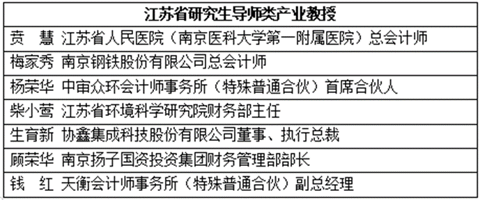 会计学院拥有教师80多人,高级职称40多人,博士生导师7人,硕士生导师40人,博士率86%。其中,教育部会计学专业教学指导委员会委员1人,全国审计专业学位研究生教育指导委员会委员1人、教育部长江学者奖励计划特聘教授1人、教育部新世纪优秀人才1人、教育部课程思政教学团队1个,教育部课程思政教学名师7人,财政部全国会计名家工程”1人(全国75人),财政部全国会计领军人才(学术类)”4人(全国198人),财政部咨询专家4人(管理会计、内部控制、政府会计、可持续披露准则),中国会计学会会计教育专业委员会副主任委员1 人、中国会计学会会计基础理论委员会副主任委员1人、中国会计学会专业委员会委员6人,江苏省青蓝工程优秀教学团队1个,江苏省六大高峰人才、江苏省“333”工程人才、江苏省青蓝工程人才等18人,江苏省财政厅咨询专家、江苏省会计学会专业委员会主任、副主任、委员多名。