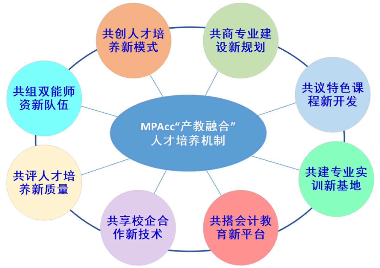 与合作单位联合成立了智能会计产业学院和工信部专精特新产业学院(大数据智能风险管理),共建产教融合长效机制八大模块。