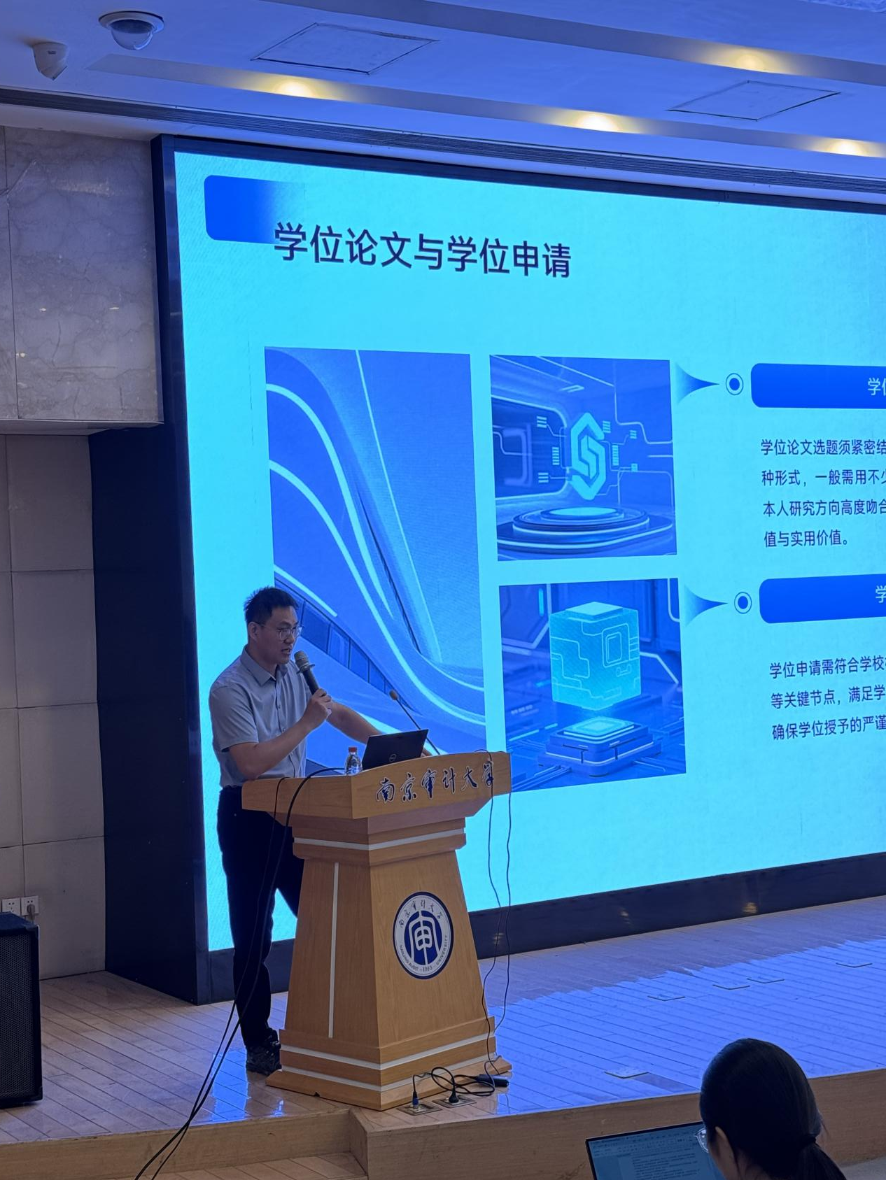 沈静从研究生培养与学位工作整体框架切入,按“年级—时间段—关键节点”逐层展开,系统梳理了教学管理规定、培养方案执行、毕业与学位授予条件等核心事项,并现场提示各时段易忽略的教学类提醒。