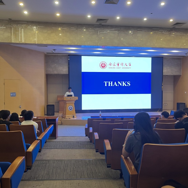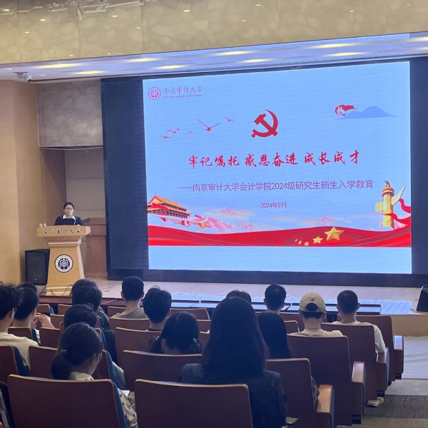 吴春梅对2024级研究生新生表示热烈欢迎。讲座开始后,她首先从牢记嘱托、感恩奋进方面,带领全体研究生一起深入学习党的二十届三中全会精神、《习近平给南京审计大学审计专业硕士国际班的留学生的回信》精神、署领导和省领导讲话重要精神。接着,从传承校训、植根铸魂方面,要求研究生践行“诚信、求是、笃学、致公”的校训,并对校训具体含义进行阐释。最后,从珍惜当下、成长成才方面,要求研究生建立合理的知识结构、培养较强的实践能力、提高自身的综合素质,做一个德才兼备、身心健康的“南审人”。