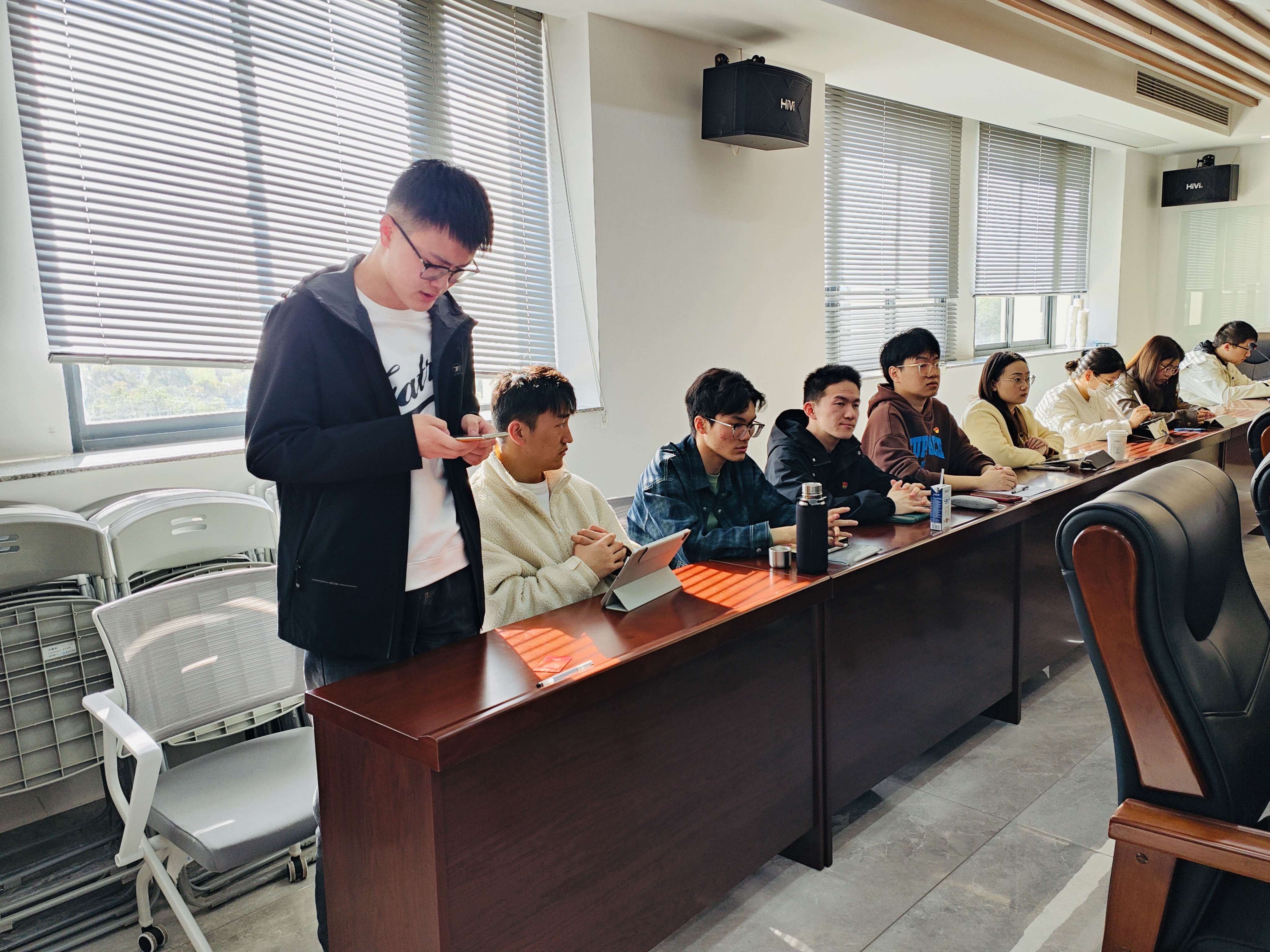 研究生第一党支部副书记吴冠泽首先带领全体研究生党员学习了习近平总书记参加江苏代表团审议时的重要讲话。讲话指出,发展新质生产力是推动高质量发展的内在要求和重要着力点;全体党员同志们应时刻牢记高质量发展是新时代的硬道理,把握好发展新质生产力的精髓要义,在以中国式现代化全面推进强国建设,在民族复兴伟业的新征程上再建新功。
