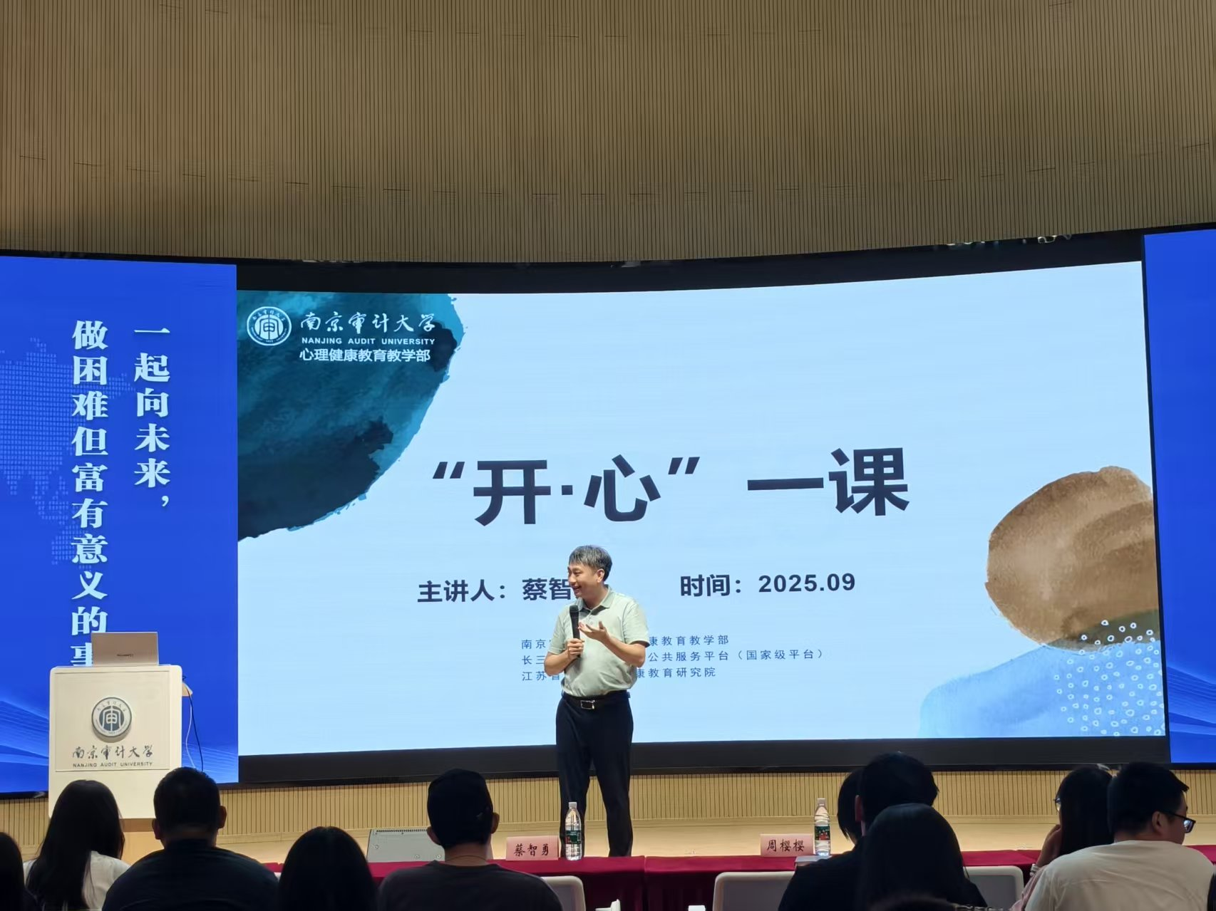 为帮助2025级研究生快速适应研究生阶段的学习与生活,2025年9月22日,会计学院专门为研究生新生组织开展了以心理健康为主题的“开心一课”。本次课程特别邀请到南京审计大学心理健康教育教学部主任、书记蔡智勇博士,为新生们带来了一场兼具专业性与实用性的心理健康指导。