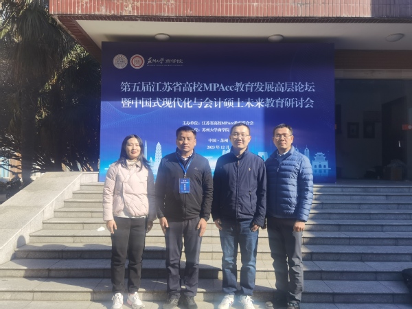 2023年12月2日,由江苏省MPAcc教育联合会主办、苏州大学商学院和苏州大学MPAcc教育中心承办的“第五届江苏省高校MPAcc教育发展高层论坛”暨“中国式现代化与会计硕士未来教育研讨会”在苏州市顺利举行。南京审计大学会计学院副院长、MPAcc教育中心副主任潘俊,MPAcc教育中心办公室主任赵娜,MPAcc教育中心办公室副主任施然,会计学院学科与研究生培养办公室主任王莹,会计学院案例中心副主任毕超一行五人受邀参加了本次会议。