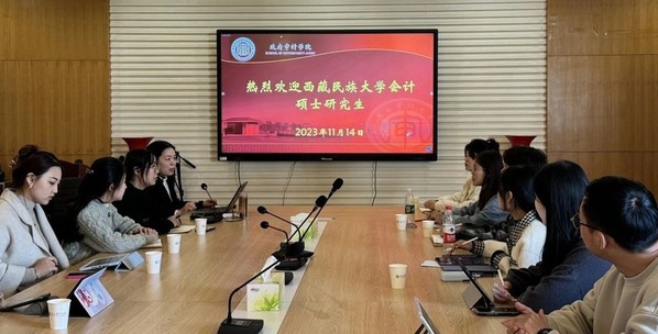 11月15日下午,西藏民族大学财经学院师生与我院师生就两校交流合作事宜展开探讨,双方签署协同育人合作协议。同时,由中国会计学会、全国会计专业学位研究生教育指导委员会主办,西藏民族大学财经学院承办的MPAcc会计名家公益大讲堂顺利举办。