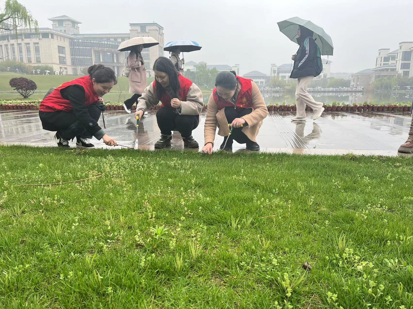 三月草长莺飞,正是大地添绿之际,会计学院行政管理人员党支部、研究生党支部和研究生学生会分别开展“认养一片草坪”和“指尖绿意,爱满校园”清除杂草志愿服务活动。润泽湖边,志愿者们撸起袖子清理杂草的画面,融入了春景,充满无尽的生意。爱绿、植绿、护绿,在劳动中践行雷锋精神,美化校园环境,为实现“双碳目标”做贡献。
