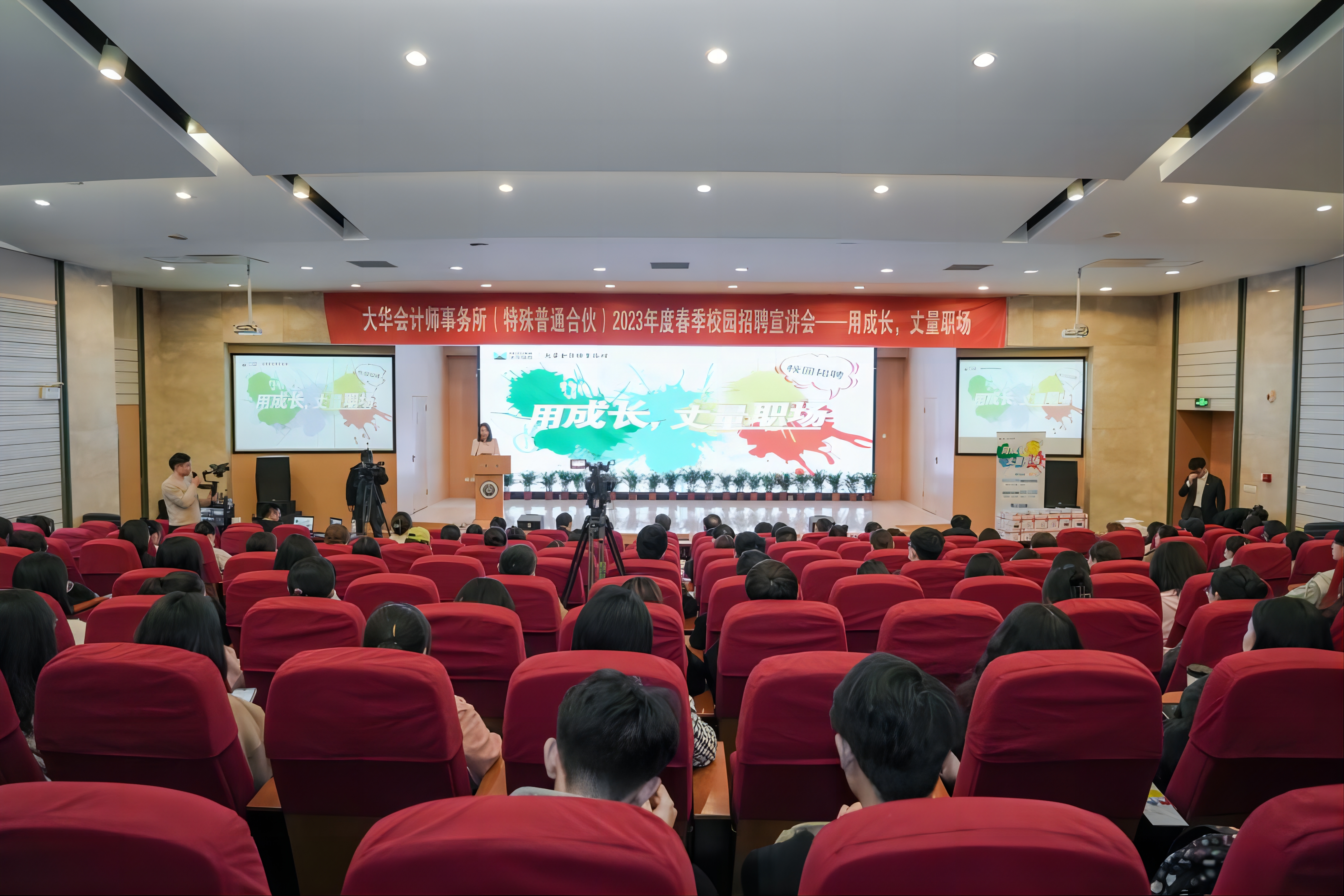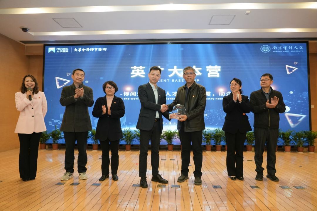 会上,在大家的共同见证下,大华会计师事务所授予南京审计大学“英才计划院校——英才大本营”荣誉牌匾;同学们还围绕专业实习和就业需求,与大华会计师事务所的招聘团队进行了热烈的互动交流。