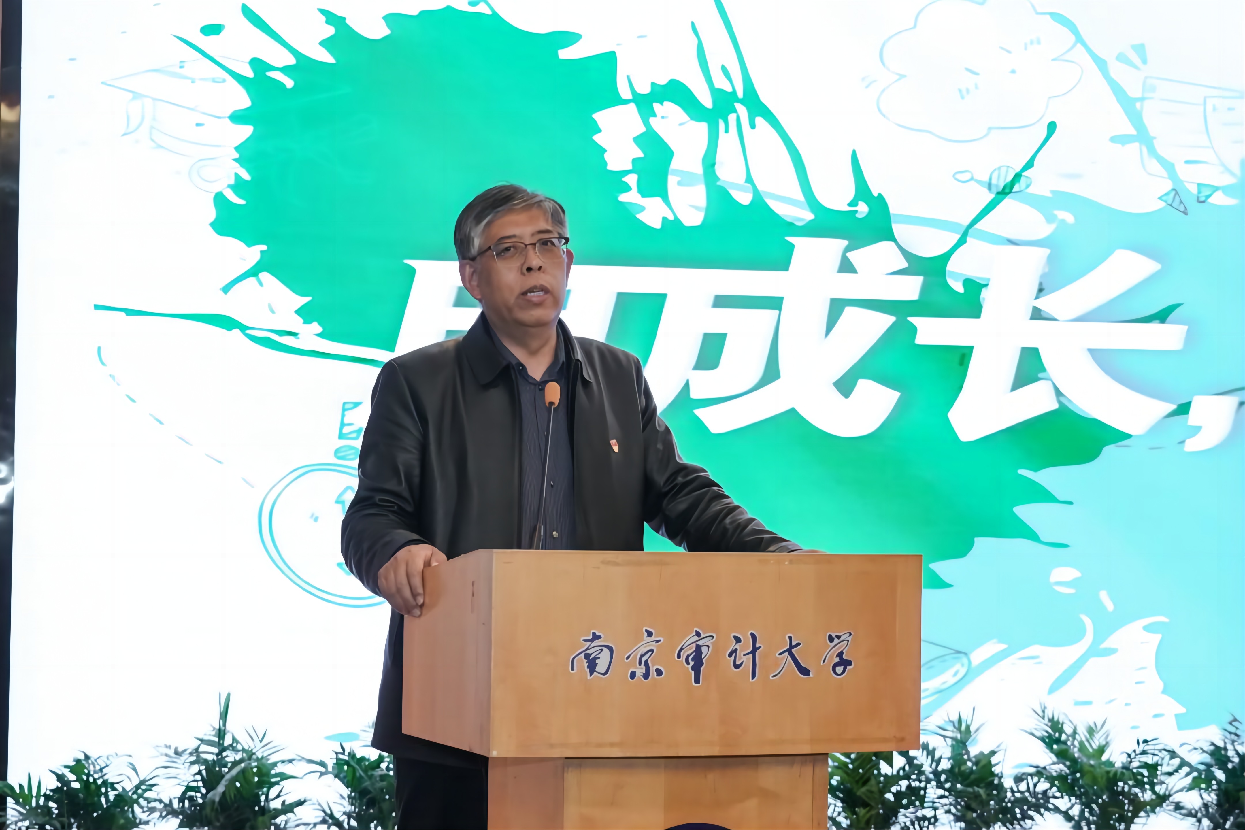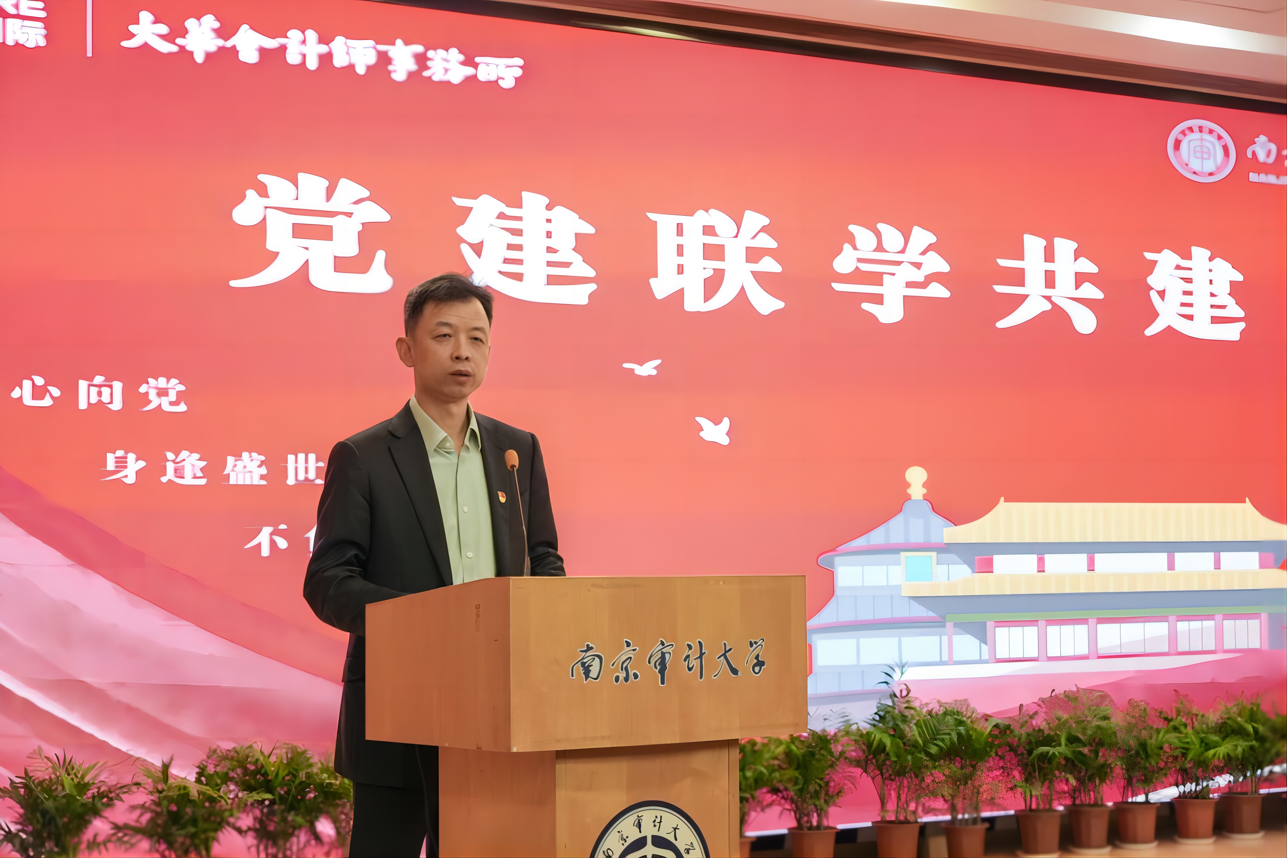 温素彬首先代表会计学院对大华会计师事务所长期以来对学院专业发展、实习实践就业等给予的大力支持表示衷心的感谢;其次,结合十四五的“更为安全”的发展新目标,对南审学子积极投入注册会计师行业,成为守护国家经济安全的财会卫士提出殷切希望;再次,就南京审计大学和大华会计师事务所深化建设产教融合机制,培养输送实务型人才培养提出展望;最后,将美好的祝愿分别送给大华会计师事务所和南审学子。