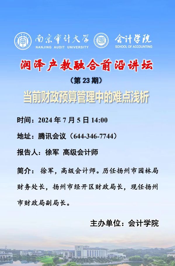 润泽产教融合前沿讲坛(第 23 期) :徐军——当前财政预算管理中的难点浅析