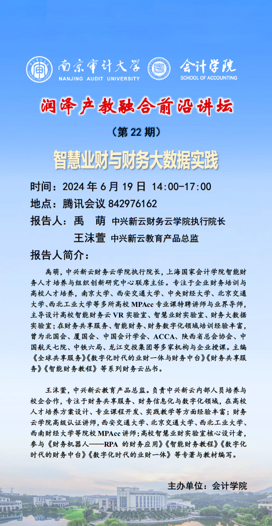 润泽产教融合前沿讲坛 (第 22 期) :禹萌,王沫萱——智慧业财与财务大数据实践