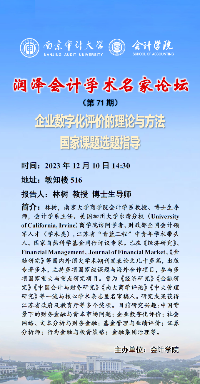 润泽会计学术名家论坛 (第 71 期):林树—— 企业数字化评价的理论与方法 国家课题选题指导