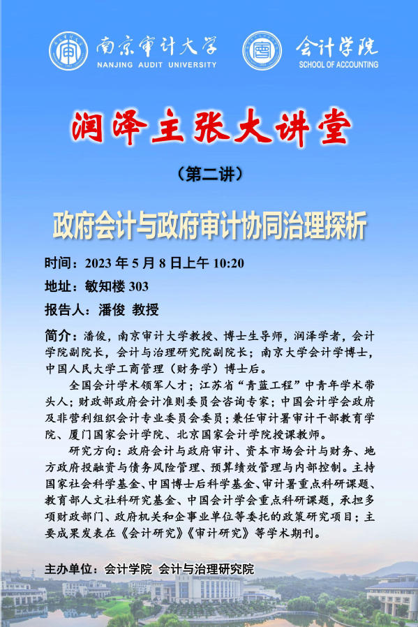 润泽主张大讲堂(第2期):潘俊—政府会计与政府审计协同治理探析