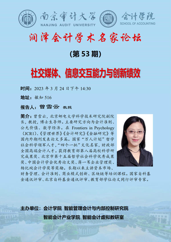 润泽会计学术名家论坛第53期:曾雪云——社交媒体、信息交互能力与创新绩效