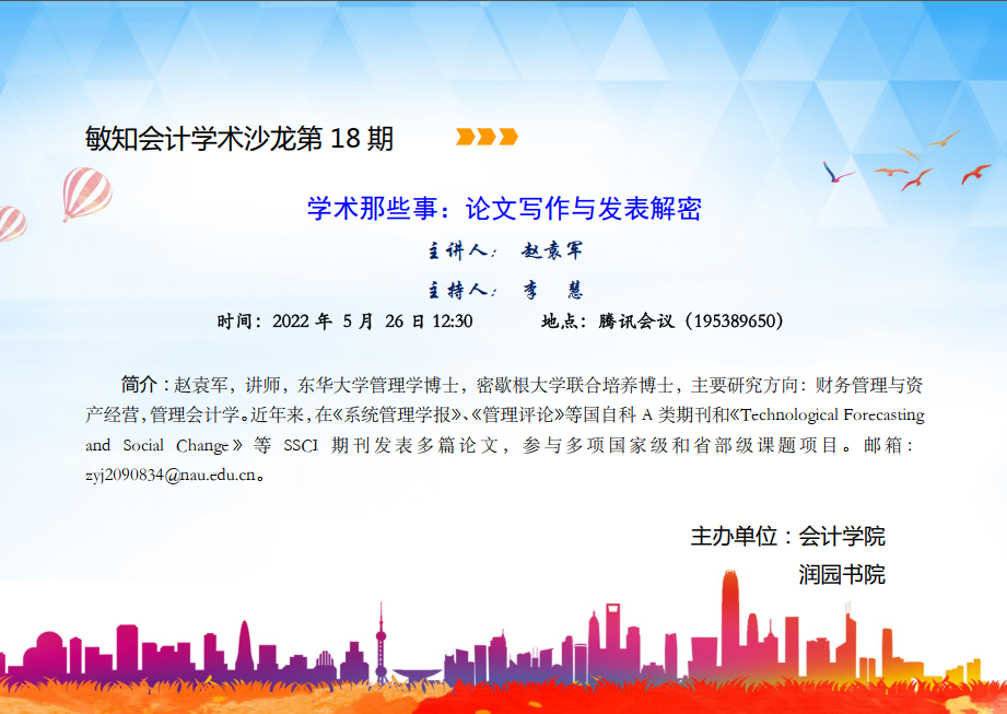 敏知会计学术沙龙第18期:赵袁军-学术那些事:论文写作与发表解密