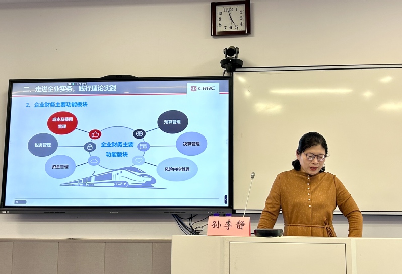 孙李静结合其主持多项江苏省社科联和中车集团财经研究课题的丰富阅历,强调财务人才需构建“硬实力+软实力”的能力体系。硬实力上,要从“会算账”升级为“懂业务”,掌握财务管理的核心技能;软实力上,要从“独行侠”转变为“协作者”,培养沟通协调、团队协作等综合素养。在此基础上,她还提出了复合型财务人才的能力模型,包括科学思维能力、创新提效能力、国际经营能力、统筹协调能力及风险管理能力,为同学们的职业发展指明了方向。